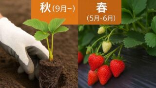 野菜 いちご苗 時期はいつ?秋植えが成功のカギ!収穫までの完全ガイド いちご苗を植えるなら、最適な時期は「秋(9月〜10月)」です。この時期に植えることで、苗は冬の間にしっかり根を張り、翌年の春(5月〜6月)には甘くて美味しい完熟いちごを収穫できます。特に根が多く、茎が太い健康な苗を選ぶことが、家庭菜園での成... 2025.09.24 野菜