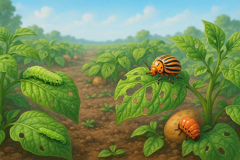 特にヨトウムシやコロラドハムシは成長期に一気に葉を食べるため、収穫量への影響が大きいです。小ぶりな芋が多くなり、見た目も悪くなります。