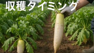 野菜 大根の収穫見極め完全ガイド種まきから60日でわかるベストタイミングと保存法 大根の収穫は「種まきから50~60日」が目安で、根の太さが直径7cm、肩が地上に15cmほど出て、外葉が垂れてきた頃がベストタイミングです。収穫の見極めを誤ると、「す」が入ってスカスカになったり、根割れやトウ立ちが起きてしまうこともあります... 2025.11.23 野菜