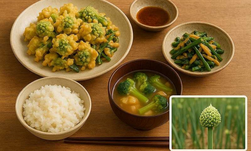 特に青ネギや白ネギの坊主は、若い段階で収穫されて「ネギ坊主」として販売され、天ぷらや炒め物に使われています。